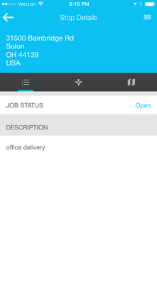 When the driver reviews current stops, provided the work orders created are for the driver’s current day, the following will display in the Field App: